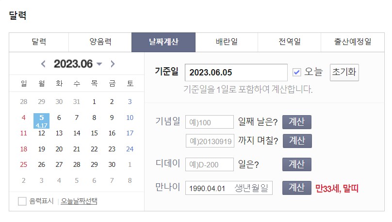 만나이 계산기 – Daum 검색